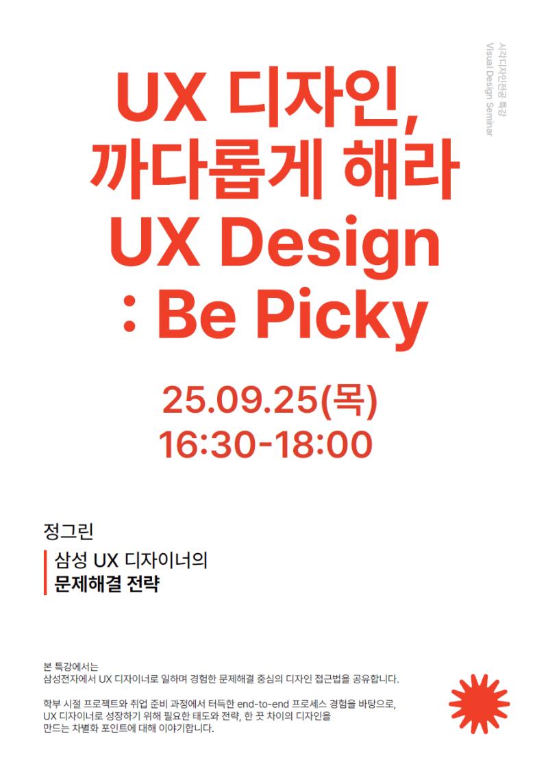 특강③ 2025년 9월25일(목) 16:30~18:00 다빈치관 625호 특강강사: 정그린소속: 삼성전자 학부 시절 프로젝트와 취업 준비 과정에서 터득한 end...